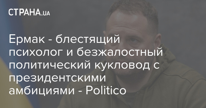"Ермак — блестящий психолог. Он способен читать Зеленского и предугадывать, чего тот хочет. Он осторожен, предлагая готовые решения Зеленскому, который ненавидит, когда его втягивают в детали, и не приносит ему проблем", - рассказал Politico бывший министр, "который резко конфликтовал с Ермаком".