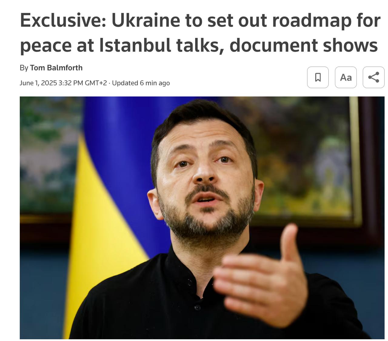 Приводим полный текст документа, опубликованный Reuters, который Украина завтра повезёт в Стамбул.