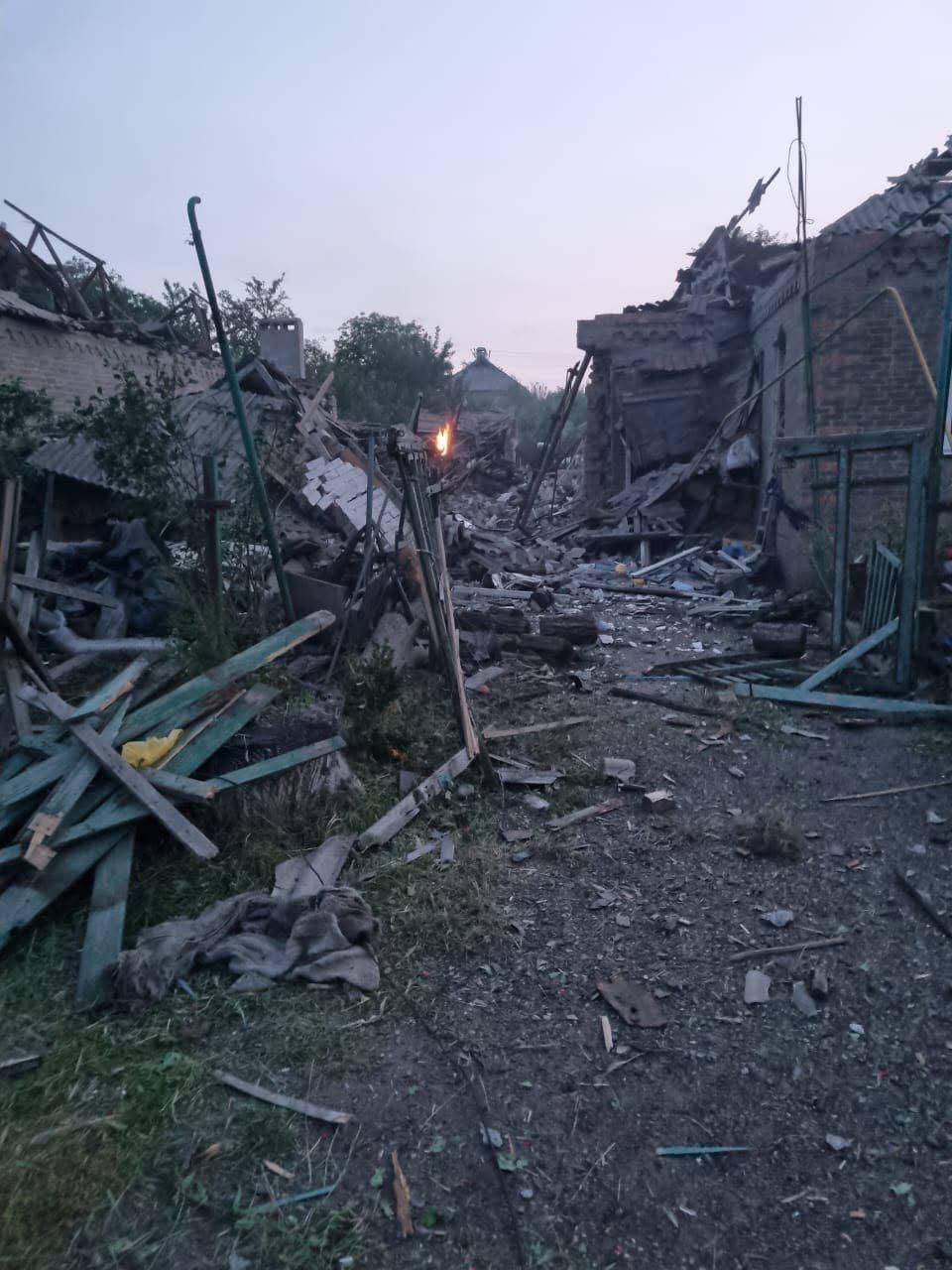 В результате удара возник пожар, повреждены 27 частных домов и один объект инфраструктуры.