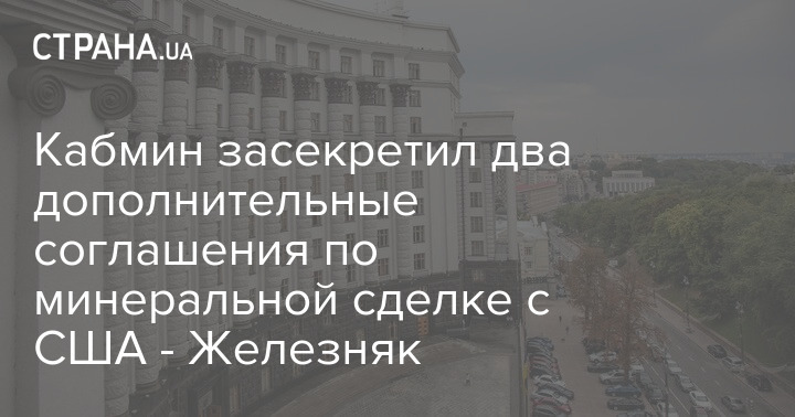 Кабинет министров засекретил два дополнительные соглашения по минеральной сделке с США. Об этом сообщает народный депутат Ярослав Железняк.