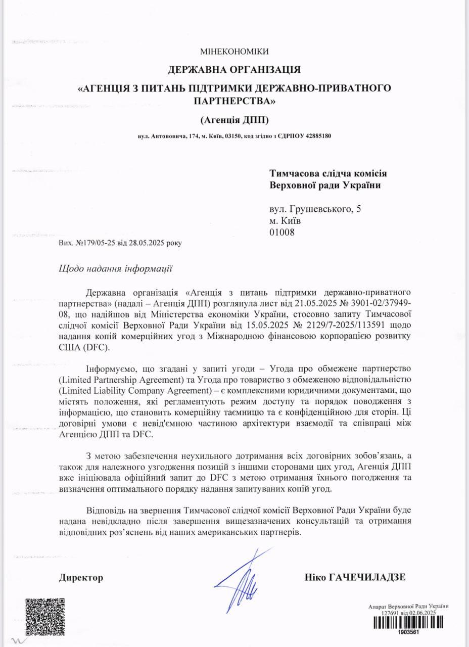 "Информируем, что упомянутые в запросе соглашения - Соглашение об ограниченном партнерстве (Limited Partnership Agreement) и Соглашение об обществе с ограниченной ответственностью (Limited Liability Company Agreement) – являются комплексными юридическими документами, содержащими положения, регламентирующие режим доступа и порядок обращения с информацией, составляющей коммерческую тайну и конфиденциальность", - говорится в ответе.