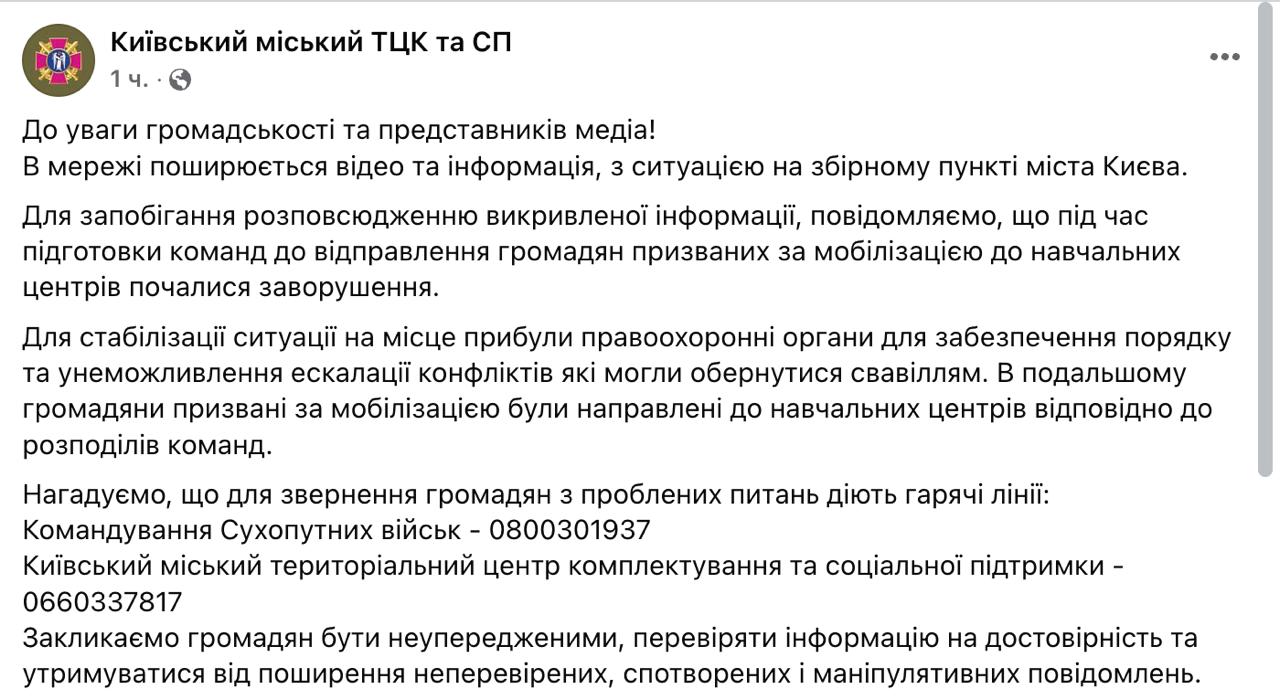 В киевском ТЦК подтвердили бунт мобилизованных в военкомате.