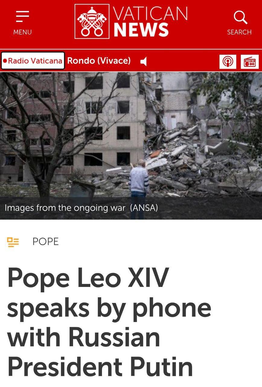 Лев XIV призвал Путина "сделать жест, который будет способствовать миру" в Украине и "подчеркнул важность диалога для налаживания позитивных контактов между сторонами и поиска путей решения конфликта".
