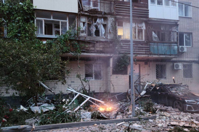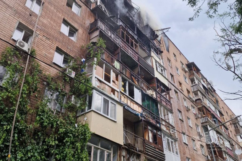 Результат попадания по многоэтажке в Харькове. Фото: ГСЧС
