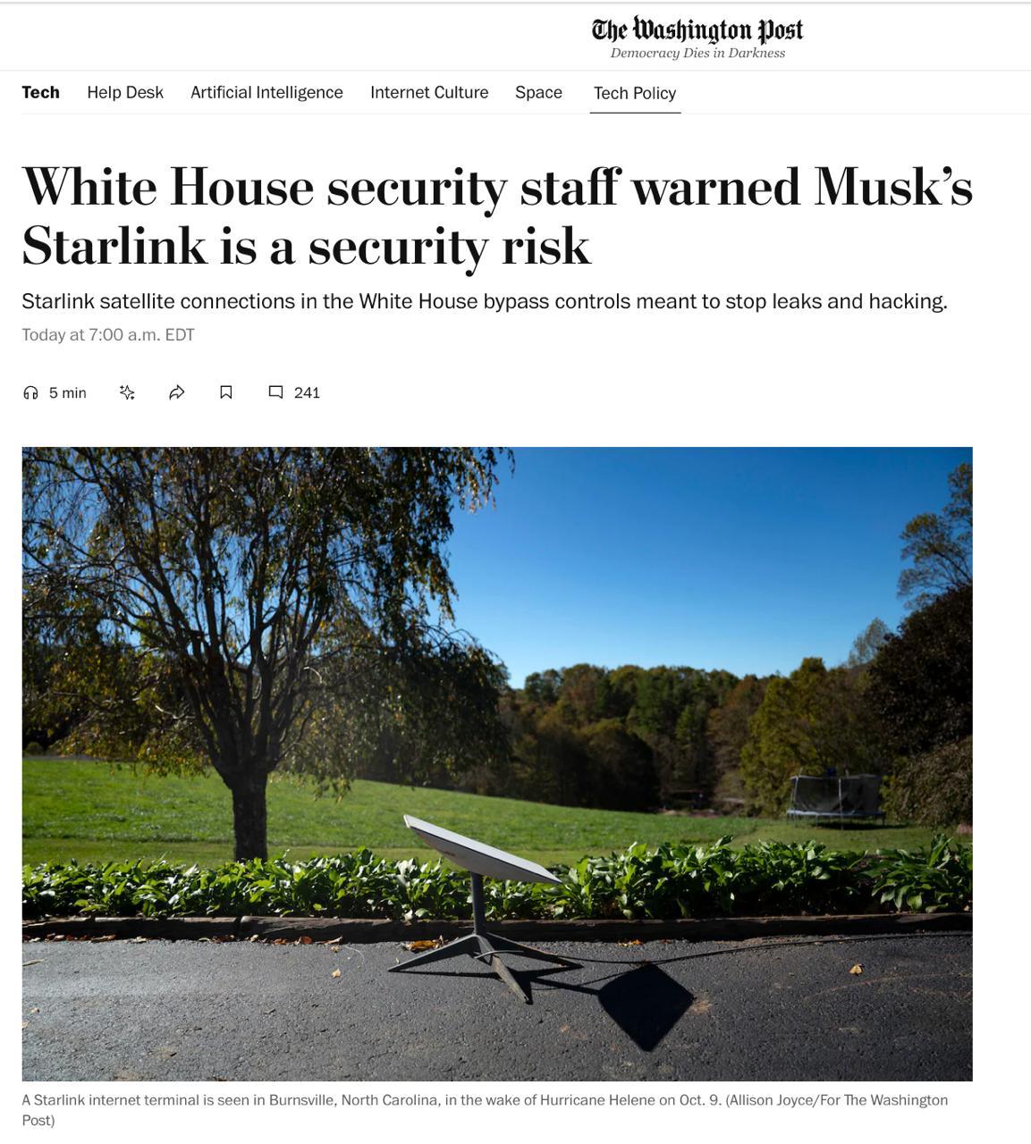 В Белом доме назвали спутниковую связь Starlink угрозой национальной безопасности США - WP