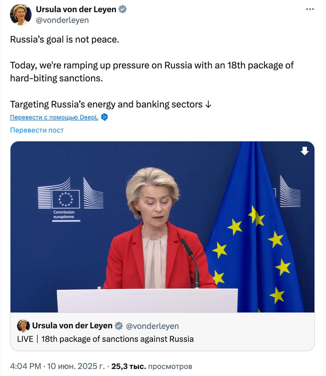 Об этом сообщила председатель Еврокомиссии Урсула фон дер Ляйен в соцсети X.