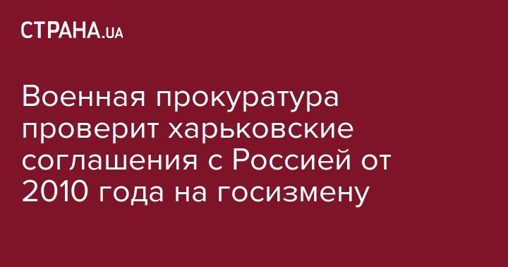 Печерский райсуд Киева разрешил военной прокуратуре изъять в МИД оригиналы договора 2010 года, который продлил пребывание Черноморского флота России в Крыму на 25 лет. О проверке так называемых Харьковских соглашений в Facebook сообщила пресс-секретарь генпрокурора Лариса Сарган.