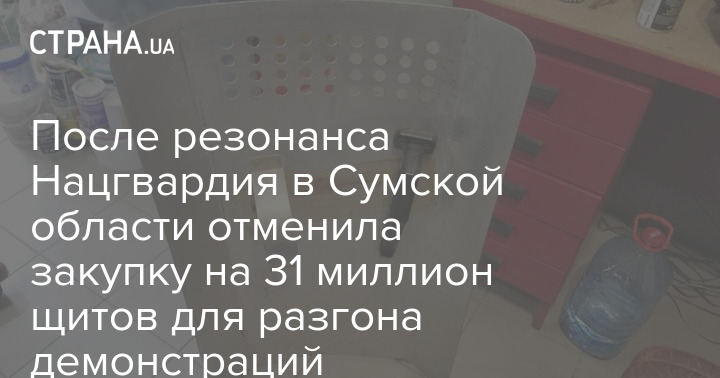 Национальная гвардия в Сумской области объявила о намерении закупить противоударные щиты для разгона демонстрантов. Ожидаемая стоимость сделки составляет 30 миллионов 750 тысяч гривен.