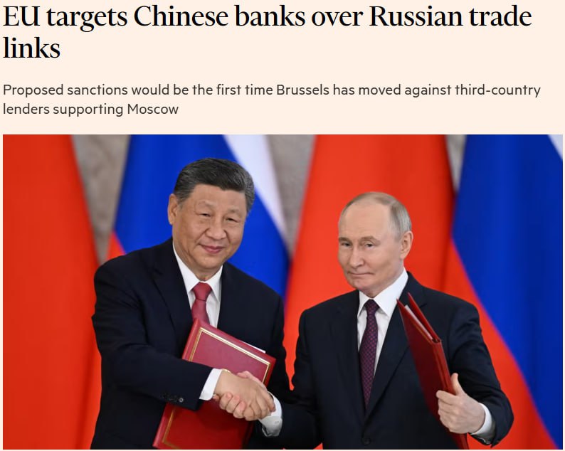 В публикации говорится, что Евросоюз готовит ограничительные меры против двух китайских банков, которые, как утверждается, способствовали запрещенной торговле с Москвой. Это первая попытка Брюсселя нацелиться на кредитора из третьей страны за поддержку войны в Украине.