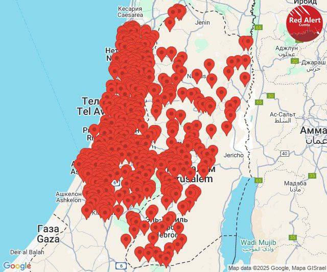 Карта воздушной тревоги в Израиле.