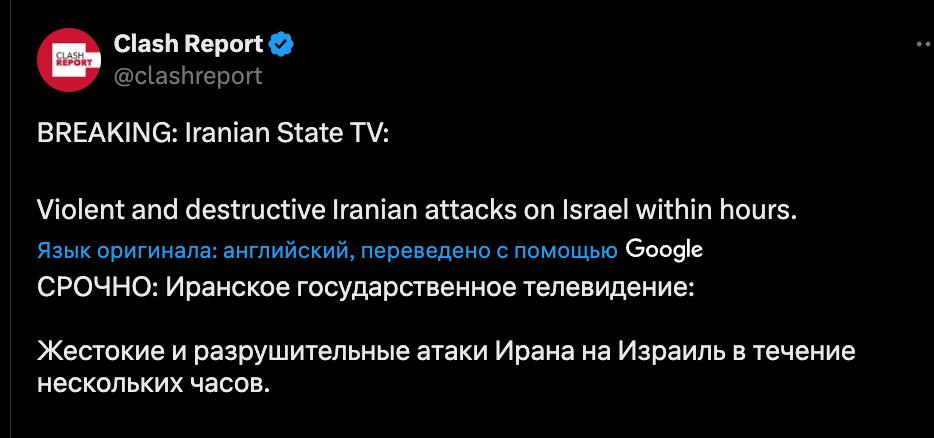 21:28 Иран проведет "жестокие и разрушительные атаки" на Израиль в течение нескольких часов.