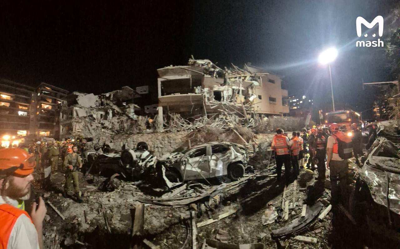Иранская ракета попала в жилой квартал - разрушены несколько домов, один полностью завален. Известно о 63 пострадавших, один погиб.