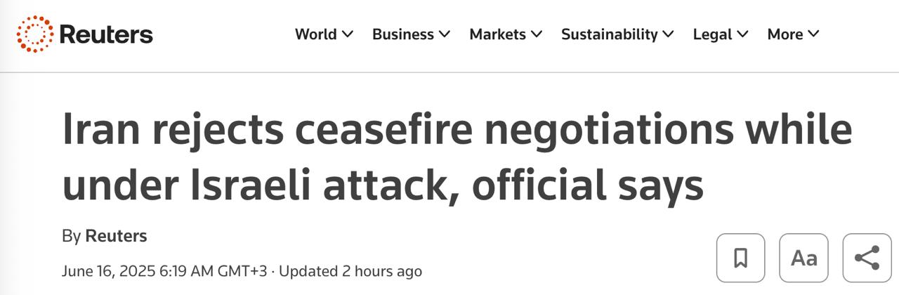 Напомним, Иран вчера заявил о готовности подписать соглашение об отказе от получения ядерного оружия. В то же время ещё вчера прошло сообщение, что Иран готов к возобновлению переговоров только в случае прекращения ударов Израиля. Что это значит, мы разбирались в отдельном материале.