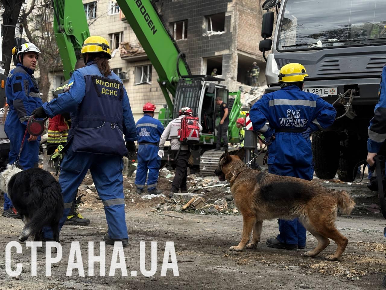10.07 В Киеве на месте обрушения подъезда людей ищут кинологи с собаками.