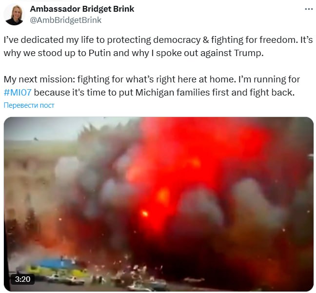 "Я посвятила жизнь защите демократии и борьбе за свободу. Именно поэтому мы противостояли Путину, поэтому я выступала против Трампа. Теперь моя следующая миссия – бороться за правильные вещи дома", – заявила Бринк.