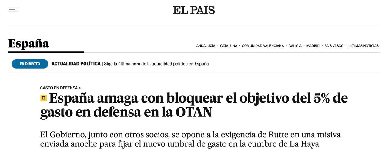Испания и еще несколько стран могут заблокировать обязательство увеличить оборонные расходы до 5% - El Pais