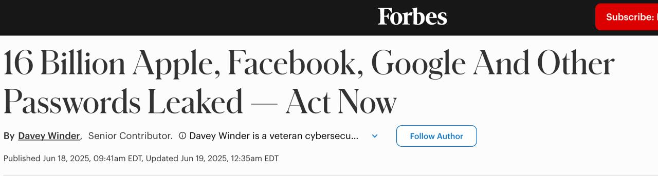 Произошла самая большая утечка данных в истории - раскрыты почти 16 миллиардов учетных данных для входа, включая пароли.