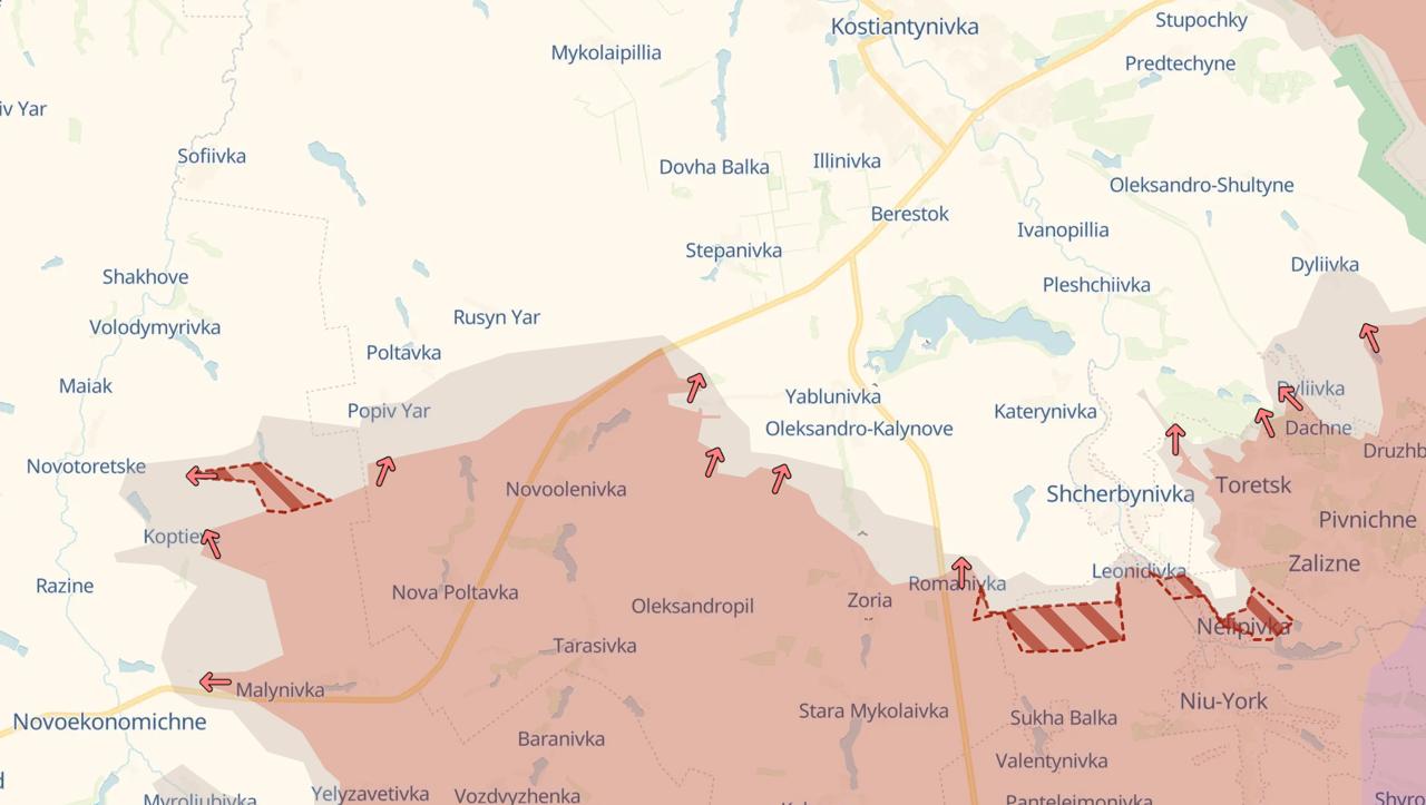 Также есть ряд продвижений к югу от Константиновки - по линии Романовка-Леонидовка-Нелиповка, и под Новоторецким.