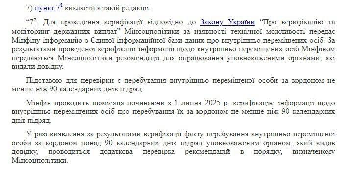 15:28 С 1 июля для внутренне перемещенных лиц станут действовать новые правила: Минфин будет ежемесячно проверять, находится ли гражданин в Украине. Об этом говорится в в постановлении Кабинета министров № 376.