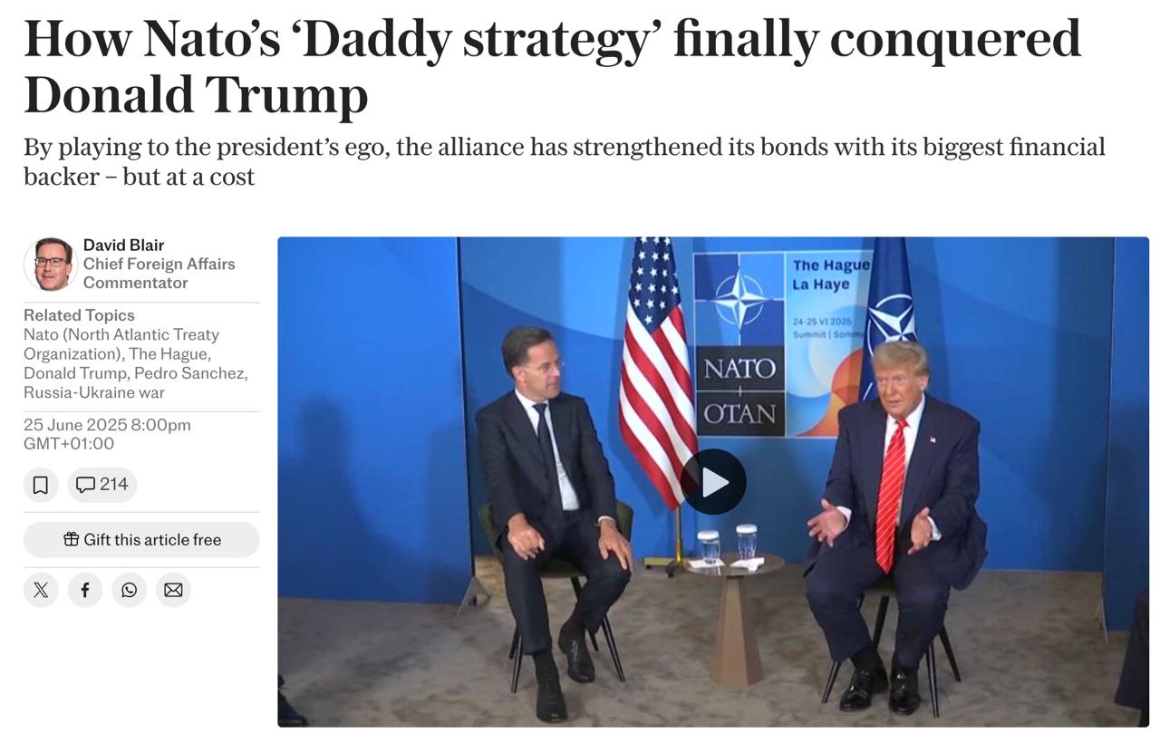 Британское издание The Telegraph отмечает, что "саммит в Гааге был задуман для того, чтобы служить одной и единственной цели: удовлетворению желаний и потребностей Трампа".