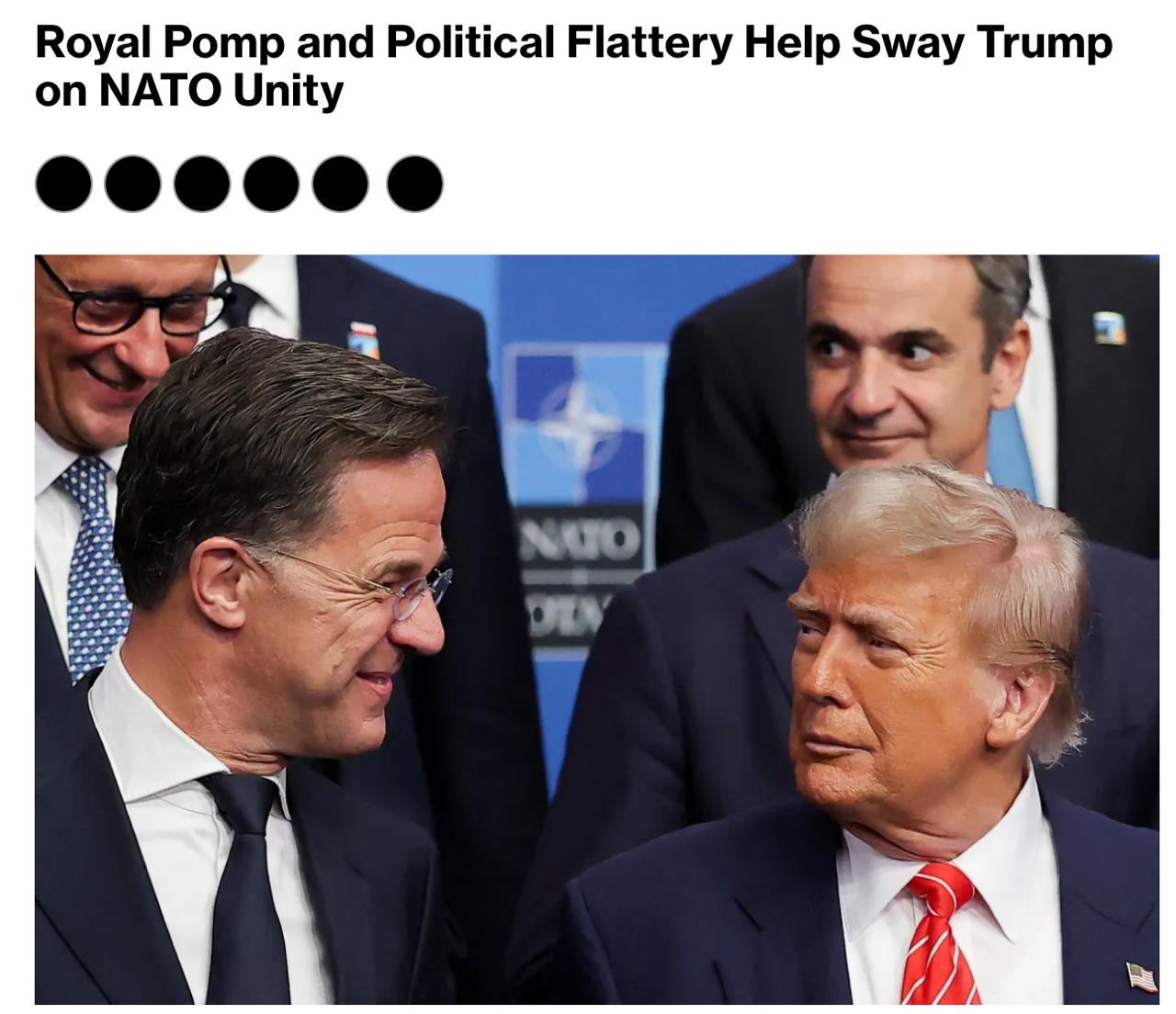 "Лидеры НАТО решили, что одной похвалы и лести недостаточно для решения этой задачи. Вместо этого они превратили высокую дипломатию в искусство расчетливого раболепия", - добавляет издание.