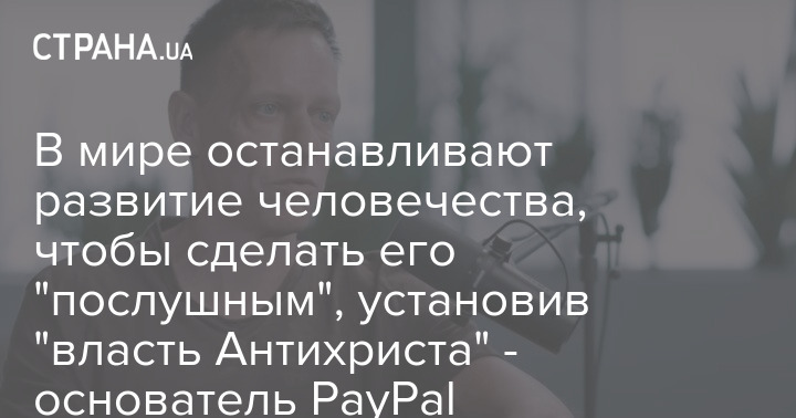В мире останавливают развитие человечества, чтобы сделать его "послушным", установив "власть Антихриста" - основатель PayPal