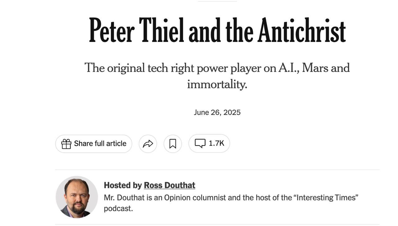 Такие заявления сделал основатель PayPal Питер Тиль, который поддерживает президента США Дональда Трампа и считается очень близким к вице-президенту Джей Ди Вэнсу, в интервью колумнисту New York Times Россу Доутату.