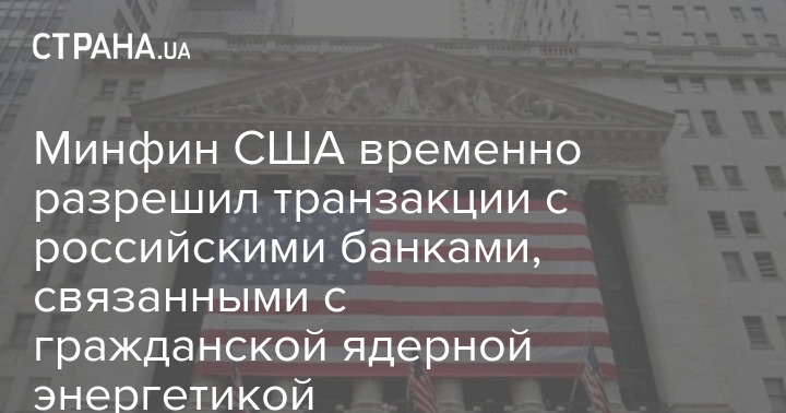 Министерство финансов США снова временно разрешило определенные транзакции с рядом российских банков, если они связаны с гражданской ядерной энергетикой.