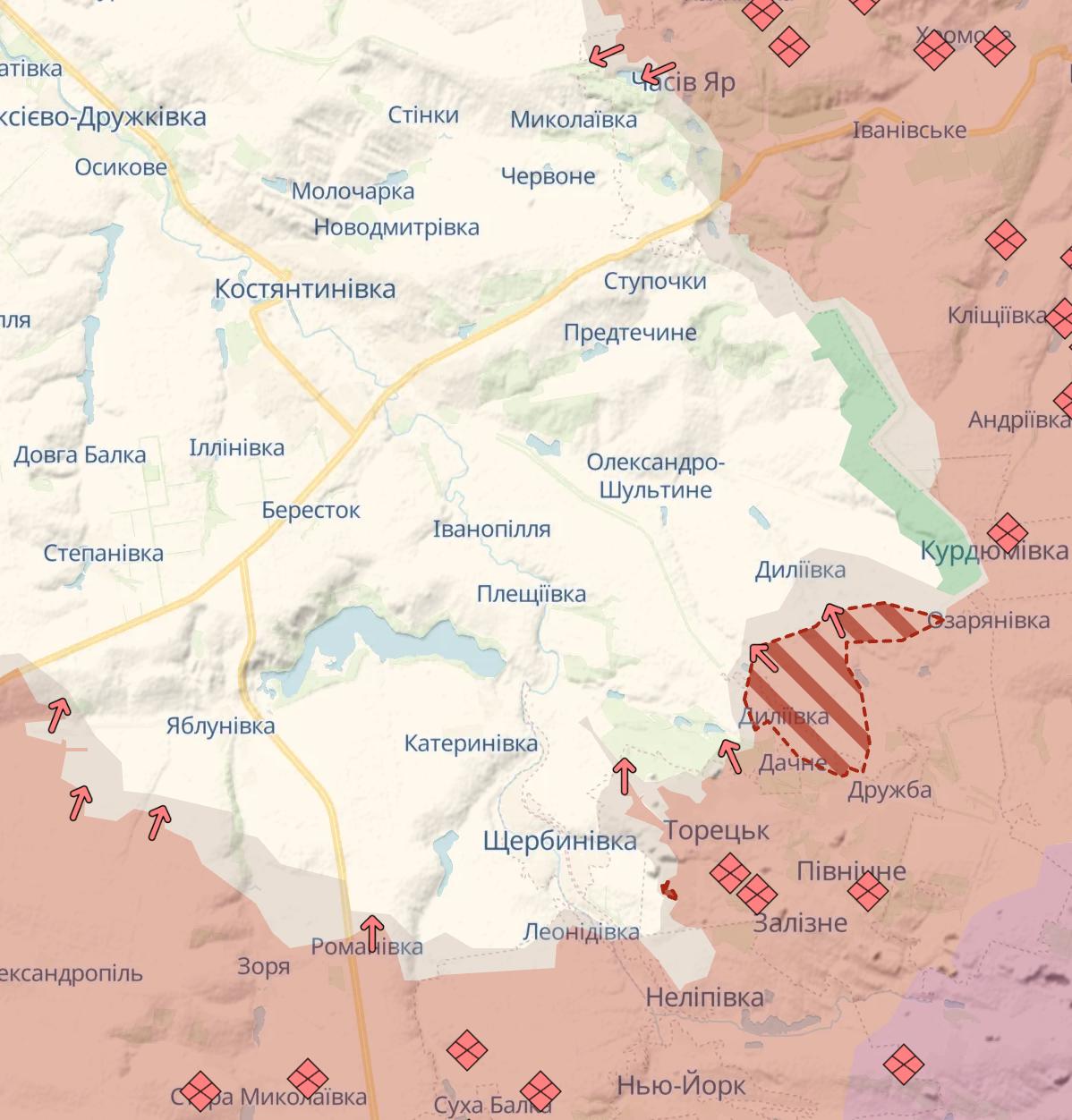 Кроме того, фиксируется продвижение в Торецке и севернее, около Делиевки.