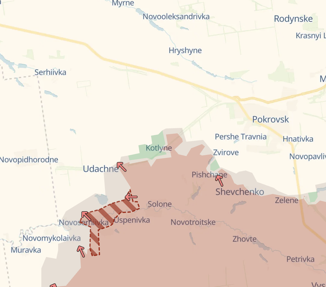 Также, по его словам, "противник активно давит к северу от Новониколаевки и к северу от Новосергеевки, пытается выйти в район Молодецкого, чтобы таким образом перерезать логистику в Удачном. Затем — осуществить удобный охват с двух сторон и начать плотный штурм этого села. Далее цель россиян - взять под контроль шахтоуправление Покровское, обеспечить фланг в районе Сергеевки и перерезать трассу из Павлограда на Покровск".