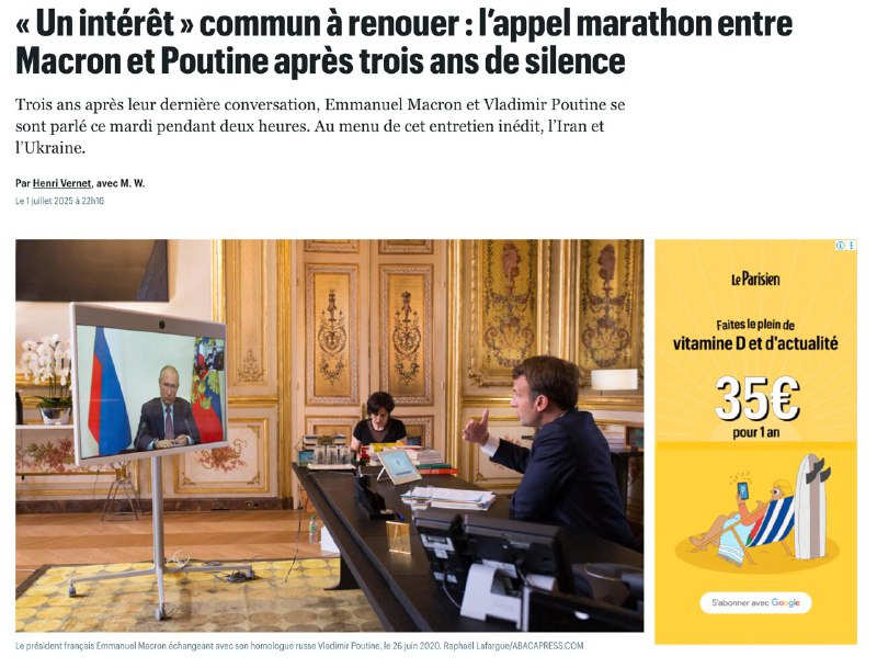 По словам окружения президента Франции, контакты с Москвой "никогда не были полностью разорваны", но сейчас у обоих лидеров возник интерес к восстановлению прямой связи.