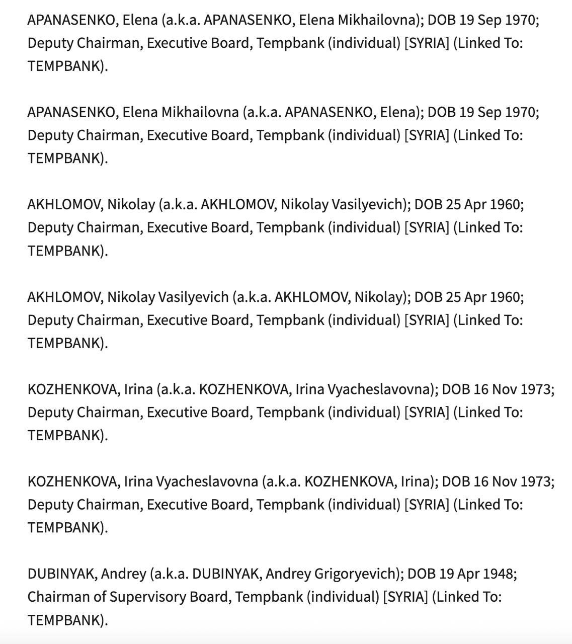 Из санкционного списка исчезли: