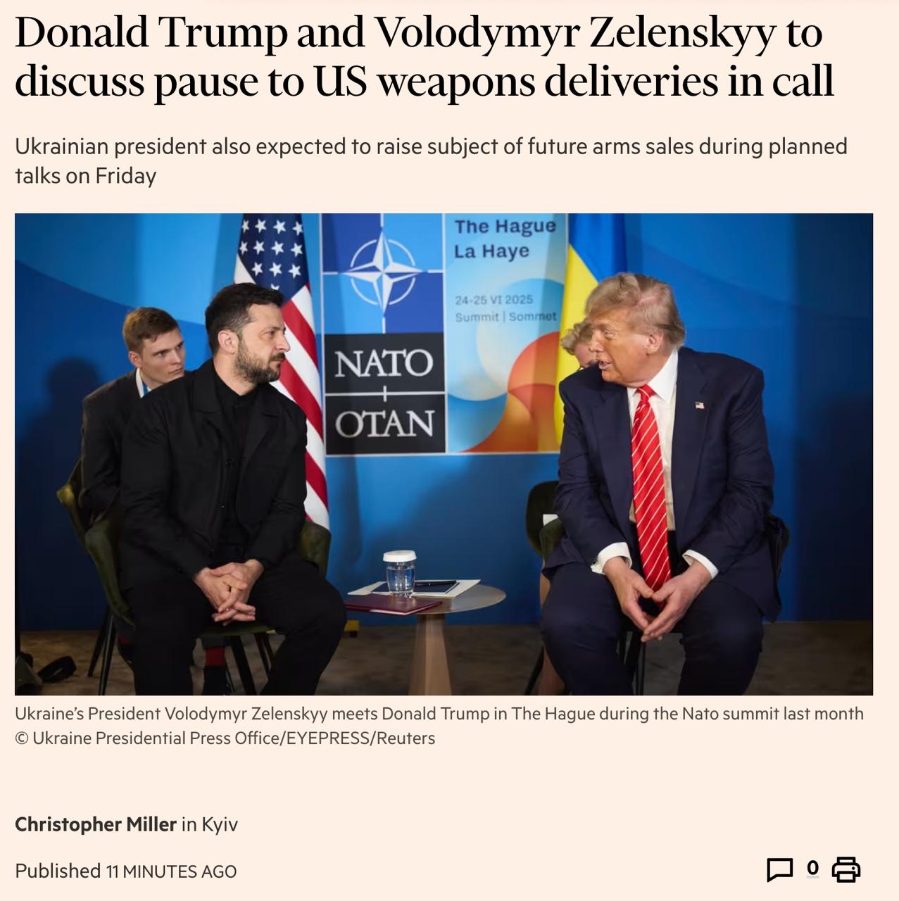 Завтра может состояться телефонный разговор Зеленского и Трампа о заморозке поставок военной помощи - FT