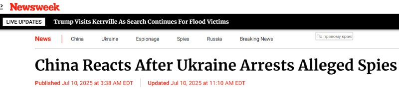 Китай отреагировал на аресты в Украине предполагаемых шпионов, сообщает журнал Newsweek. МИД Китая заявил, что продолжает проверять информацию об аресте в Украине двух своих граждан.