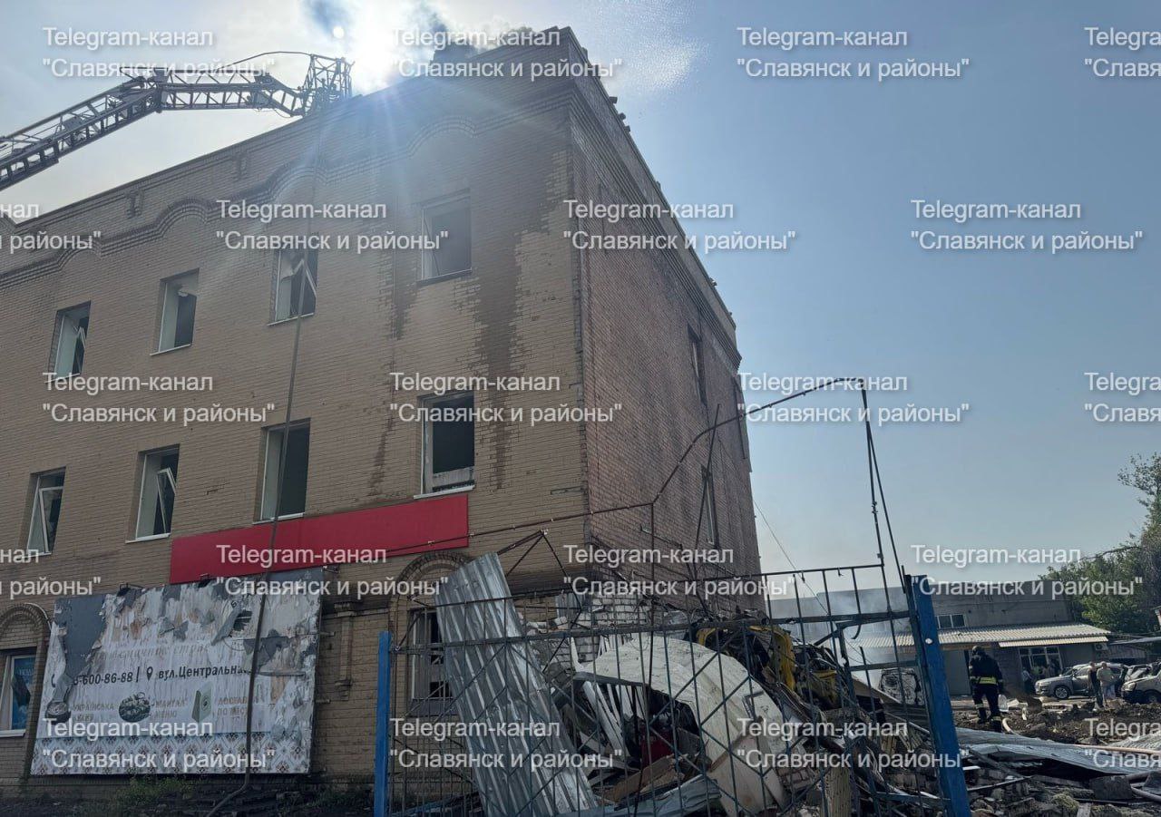 16:52 Как выглядел пожар в Славянске после утренних прилетов по центру города.