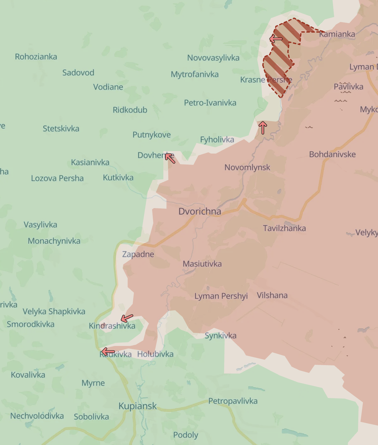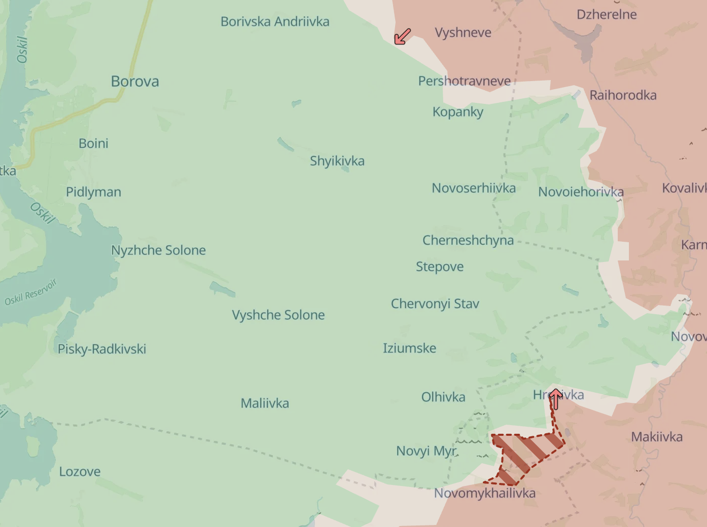 На Харьковском направлении россияне продвинулись к северу от Купянска и заняли село Красное Первое. Кроме того, отмечено продвижение в направлении Боровой - в районе Новомихайловки.
