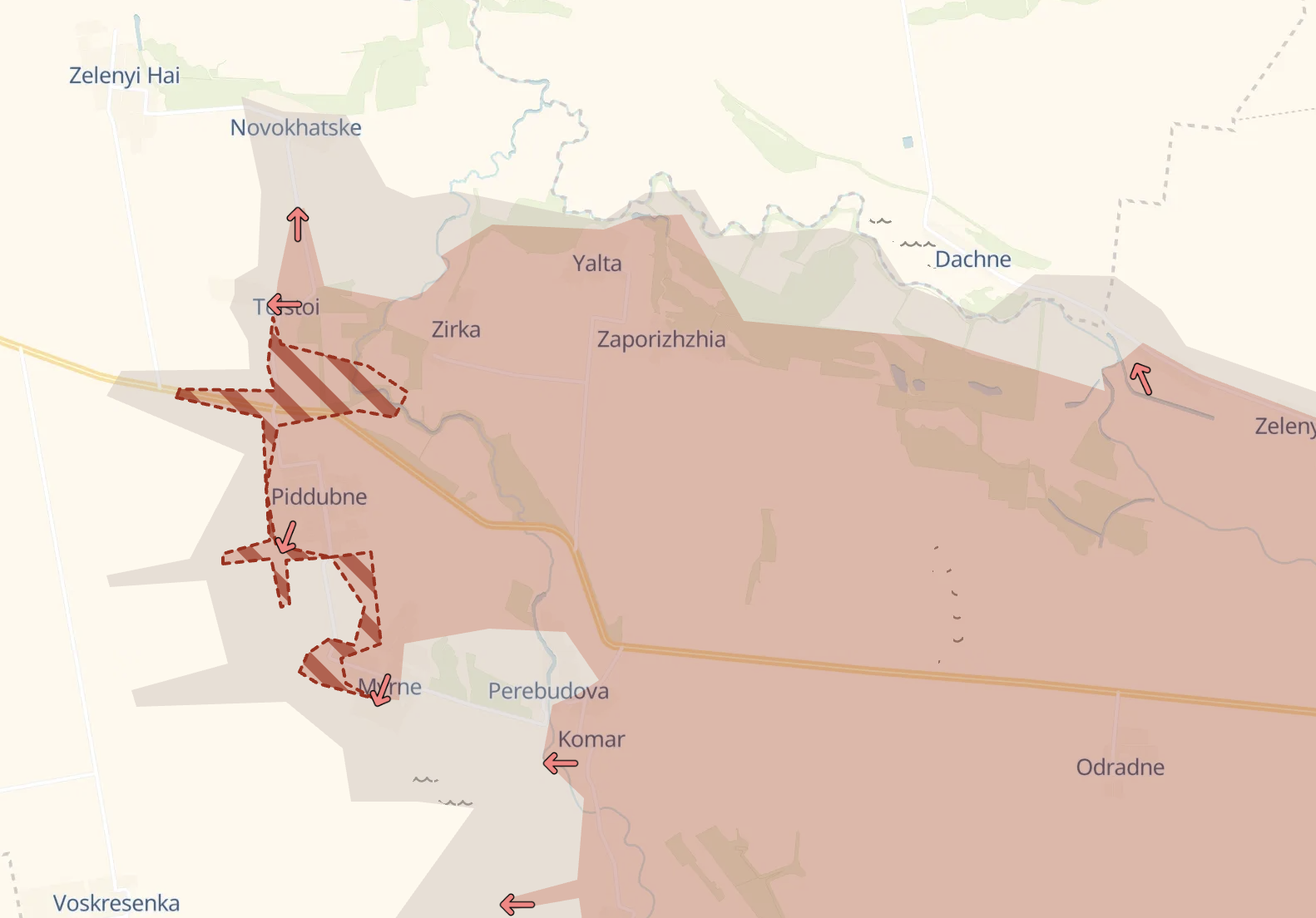На границе Донецкой и Днепропетровской областей захвачено село Зирка. Также произошло продвижение к западу от линии Мирное–Толстой. Южнее отмечено продвижение в районе села Комар.
