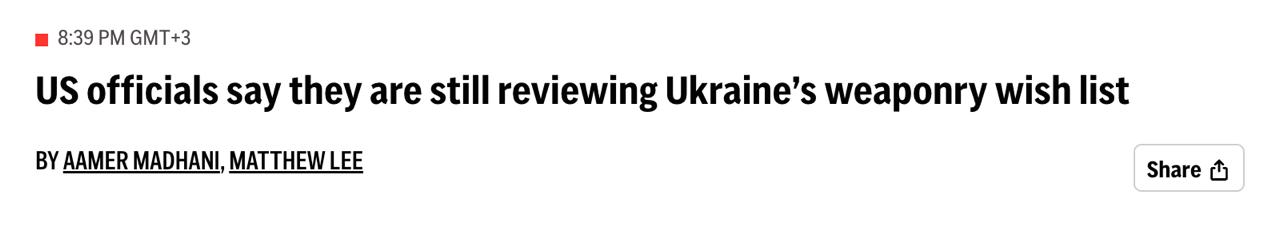 Власти США еще рассматривают список вооружений, которые запрашивает Украина. Киев просит примерно то же, что и 3,5 года назад, в начале войны: средства ПВО Patriot и APKWS (систему лазерного наведения Advanced Precision Kill Weapon Systems), ракеты большой дальности ATACMS, ракеты класса "земля-воздух" малой и средней дальности, известные как NASAM, а также различные артиллерийские системы.