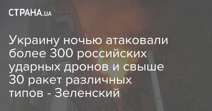 Сегодня ночью Украину атаковали более 300 российских ударных дронов и свыше 30 ракет различных типов. Под ударами оказались Донецкая, Кировоградская, Днепропетровская, Сумская, Херсонская, Волынская, Запорожская, Николаевская, Одесская и Житомирская области.