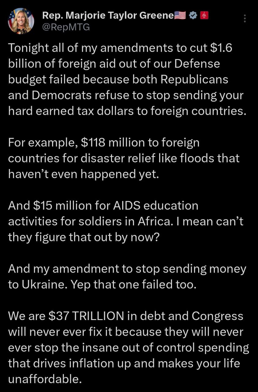 Об этом сообщила поддерживающая MAGA конгрессмен Марджори Тейлор Грин.