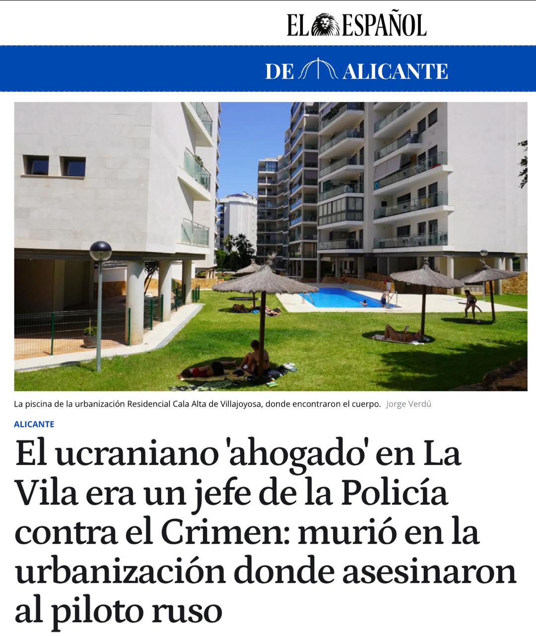 Экс-сотрудник Департамента по борьбе с организованной преступностью и Нацполиции был найден в том же жилом комплексе в Вильяхойосе, где был убит российский летчик Максим Кузьминов.