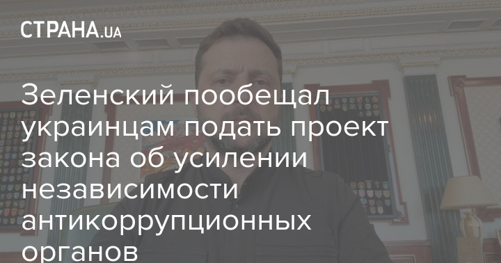 Зеленский пообещал украинцам подать проект закона об усилении независимости антикоррупционных органов