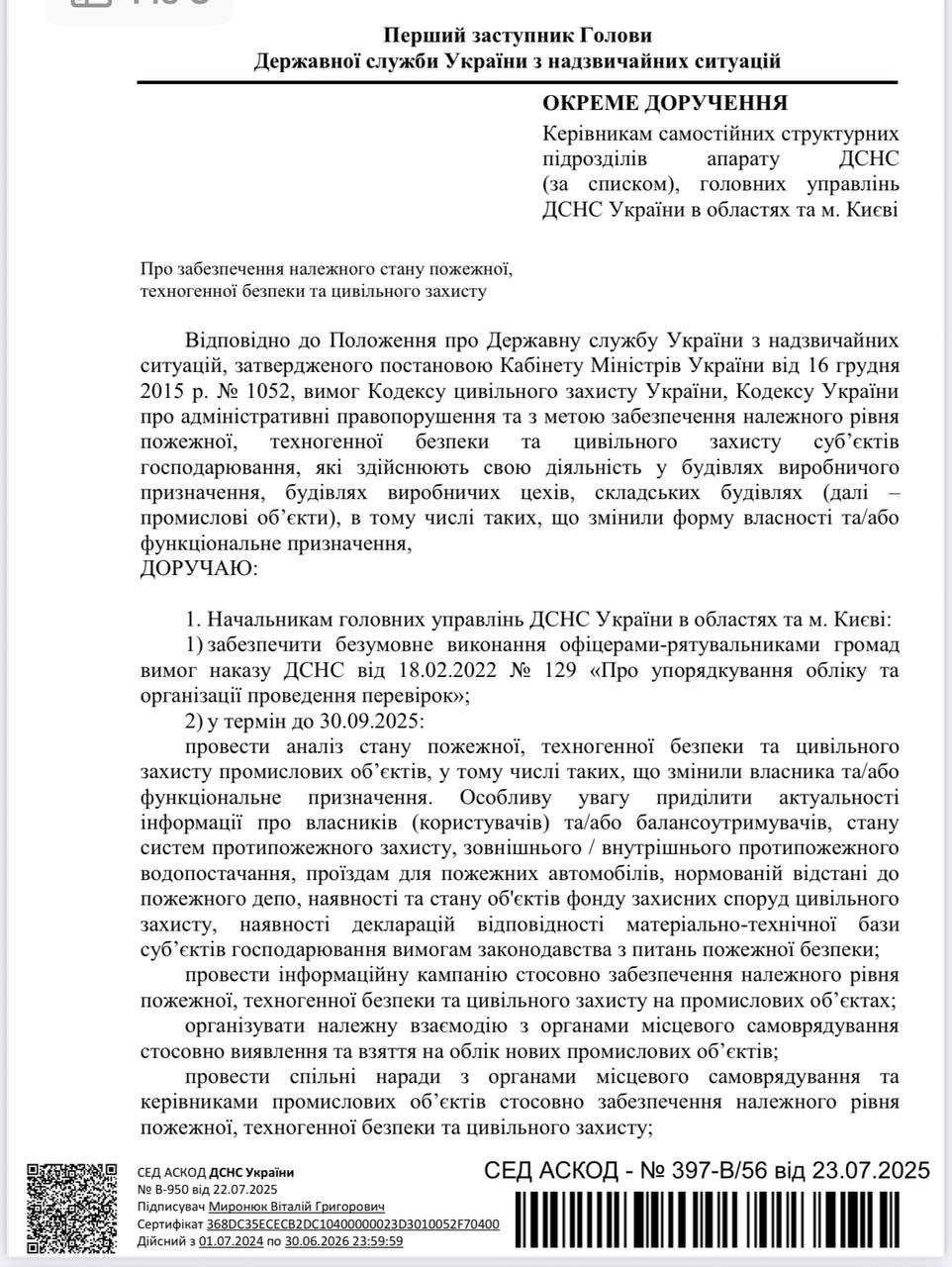 Есть и другие признаки. Нардеп Железняк публикует письмо ГосЧС, где говорится, что служба начала масштабные проверки промышленных объектов.