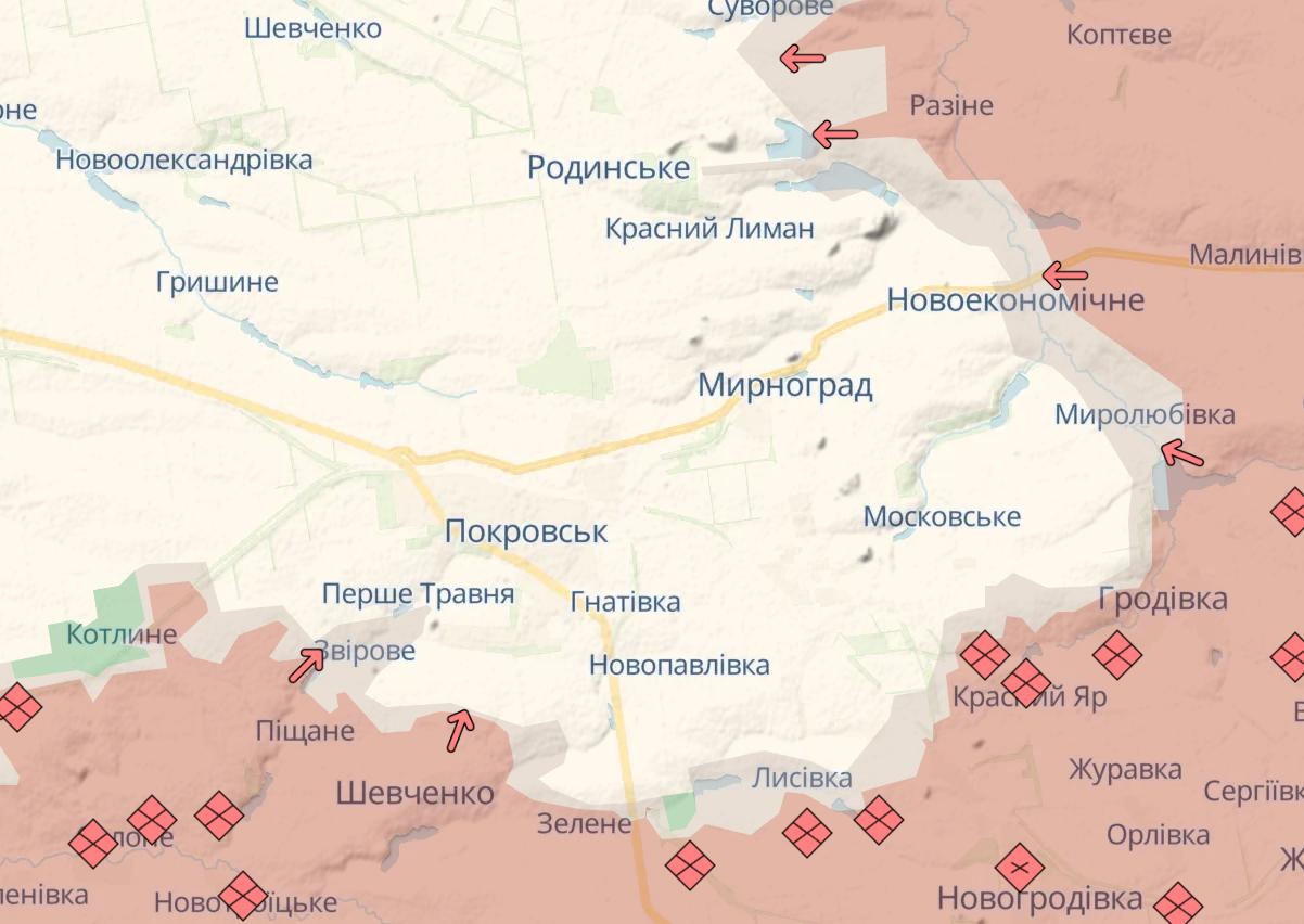 "Мирноградское направление: Ситуация сейчас напряженная и активная, враг пытается давить с нескольких направлений одновременно, чтобы расшатать нашу оборону. Основное давление происходит с восточного фланга, где враг продвинулся к восточным окрестностям Мирнограда и пытается зайти малыми штурмовыми группами в промышленные и дачные зоны, там идут ближние бои", - пишет военный.