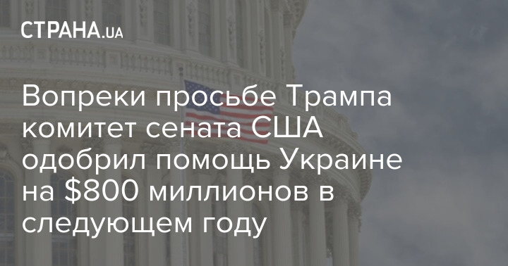 Комитет сената США по ассигнованиям одобрил помощь Украине на 800 миллионов долларов в 2026 году.