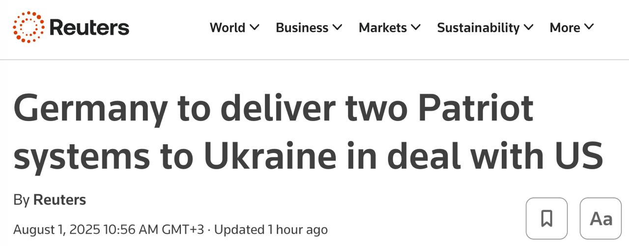 Германия уже "в ближайшие дни" передаст Украине новые пусковые установки Patriot, а затем через два-три месяца - дополнительные компоненты к ним.