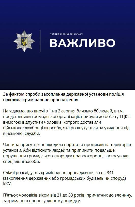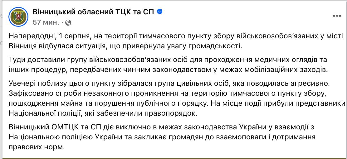 Также Винницкий ТЦК прокомментировал массовые беспорядки под стадионом "Локомотив".