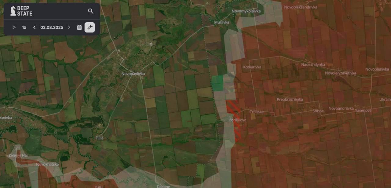 Накануне Deep State сообщил, что российские войска продвинулись в районе Воскресенки и Шевченко у границ Днепропетровской области. Под Торецком россияне заняли позиции в направлении Клебан-Быка под Щербиновкой. По данным военного паблика, за июль войска РФ имели наиболее высокие темпы наступления в Украине с начала 2025 года.