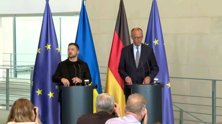 Также к прессе вышли Зеленский и канцлер ФРГ Фридрих Мерц.