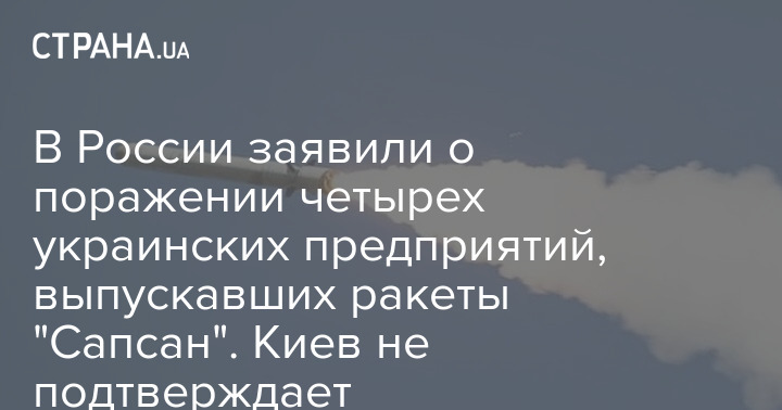 В России заявили о поражении четырех украинских предприятий, выпускавших ракеты "Сапсан". Киев не подтверждает